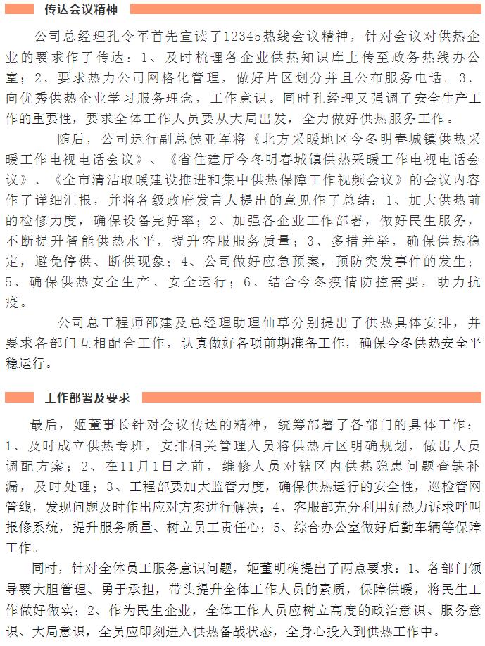 加強(qiáng)管理、提高認(rèn)識(shí),確保順利完成今冬供熱任務(wù)——運(yùn)河熱力認(rèn)真貫徹落實(shí)全省供熱電視電話會(huì)議精神紀(jì)實(shí)